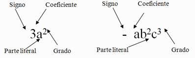Término algebraico. Es un sumando de una expresión algebraica y representa una cantidad. A todo término algebraico se le denomina monomio y consta de: coeficiente, base(s) y exponente(s).